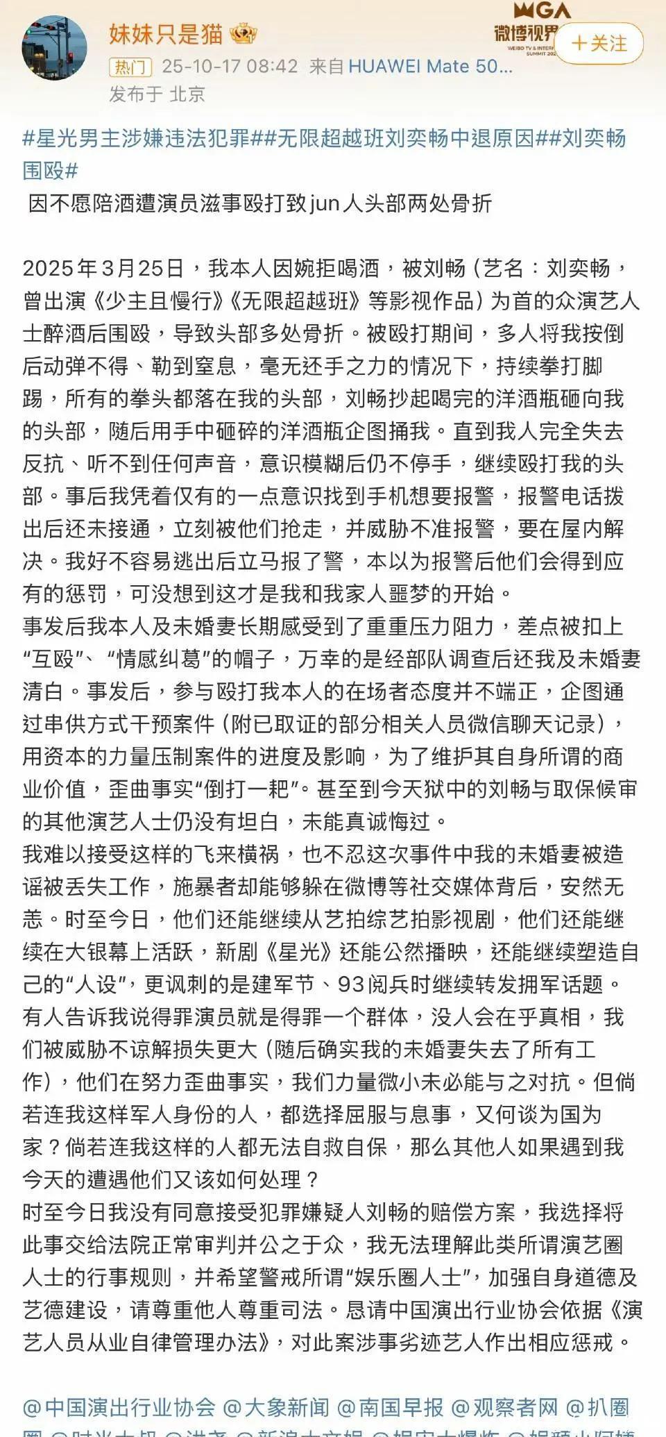刘奕畅平时出现在综艺里笑嘻嘻的,粉丝一堆,走到哪都是“明星”待遇。可这次暴露出来的,不只是脾气暴,而是那种“我有身份,我就不怕事”的底气。他身边那几个跟着起哄的人,也都不是普通人,多少沾点圈内的资源和背景。这种抱团取暖式的袒护,才是真正让人后怕的地方。